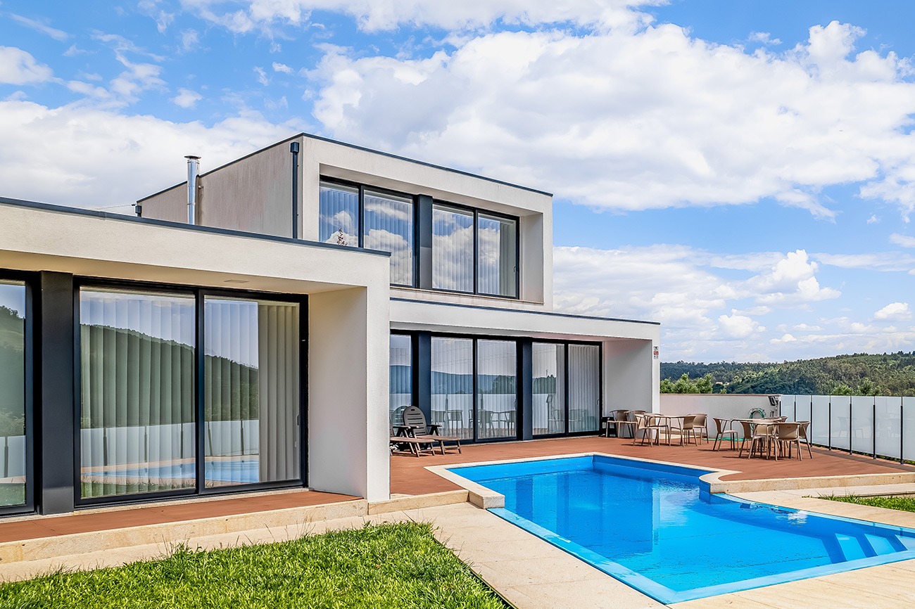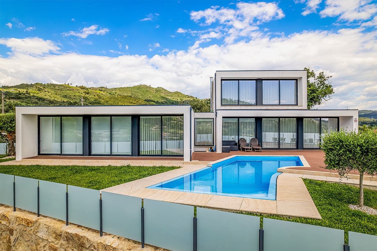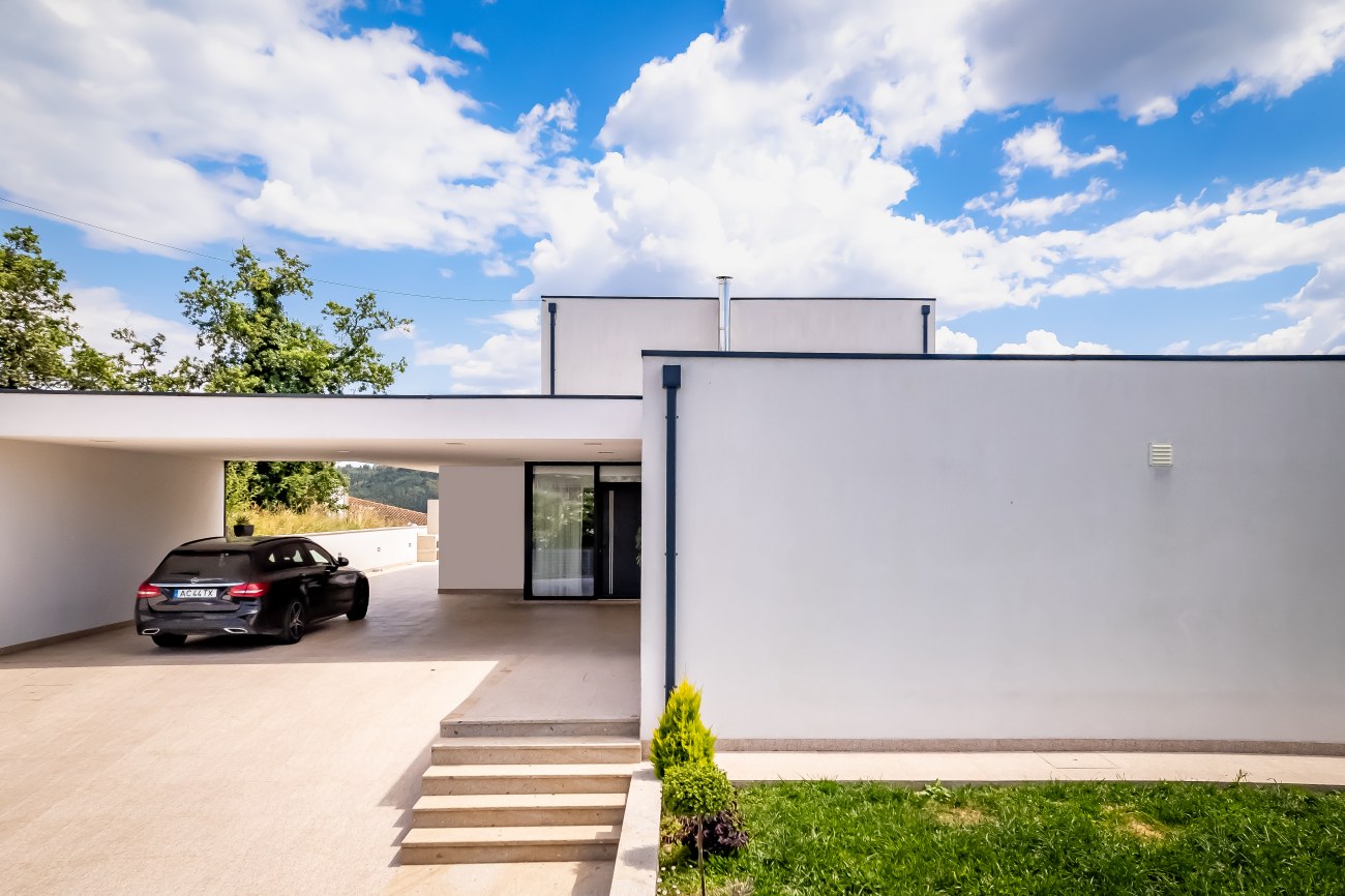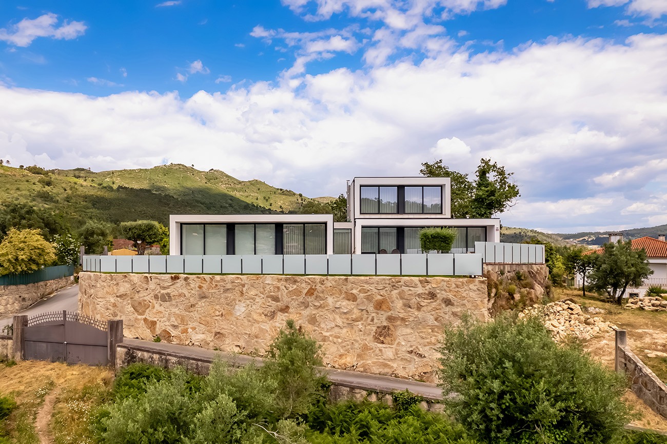 Assente sobre um terreno rochoso e inspirada na sobreposição de blocos de granito, distribui e organiza o programa em três volumes. A orientação dos vãos envidraçados, permite amplas vistas e garante uma boa exposição solar. A maior elevação sobre o ambiente envolvente, confere-lhe forte presença na paisagem.